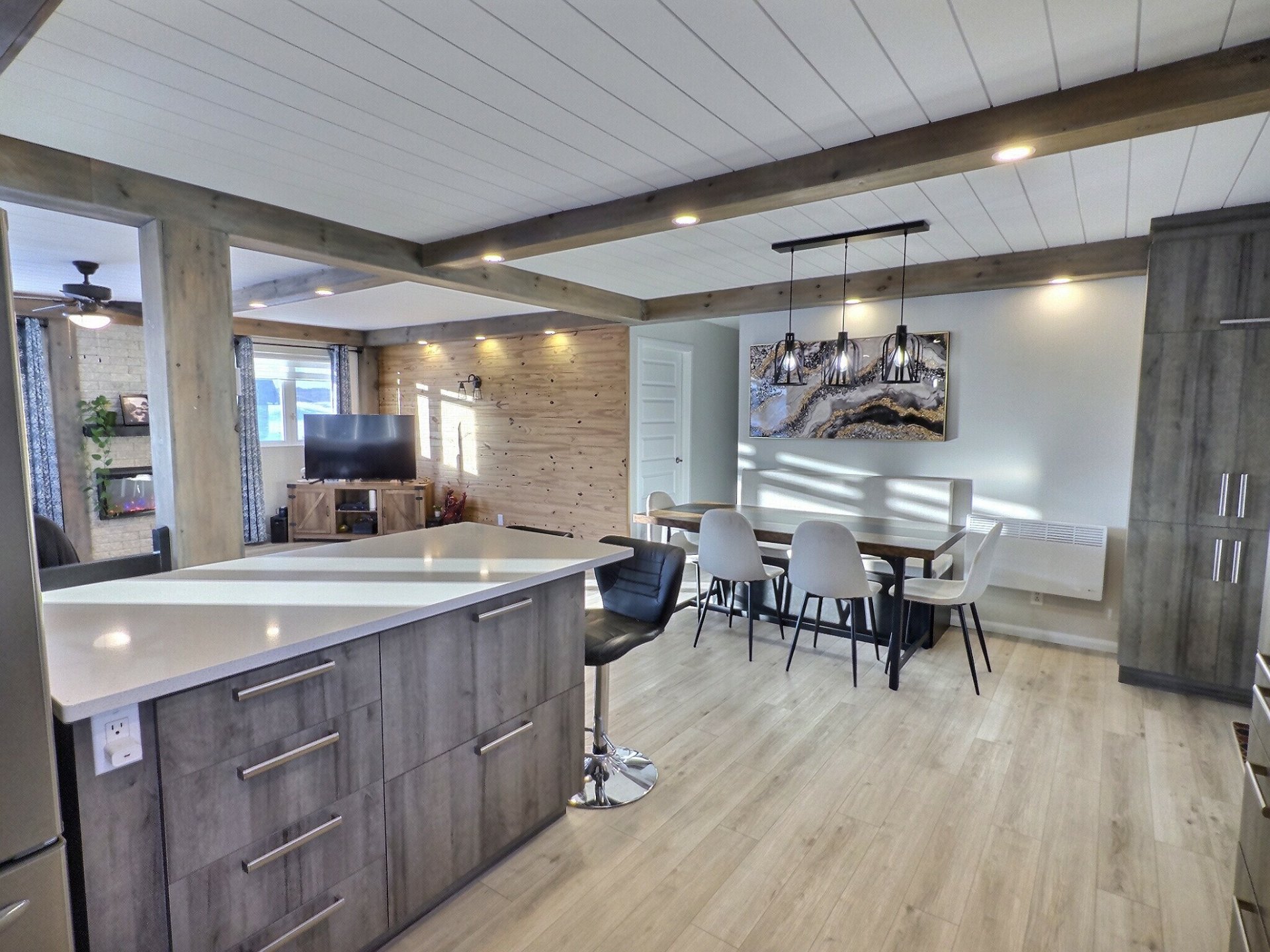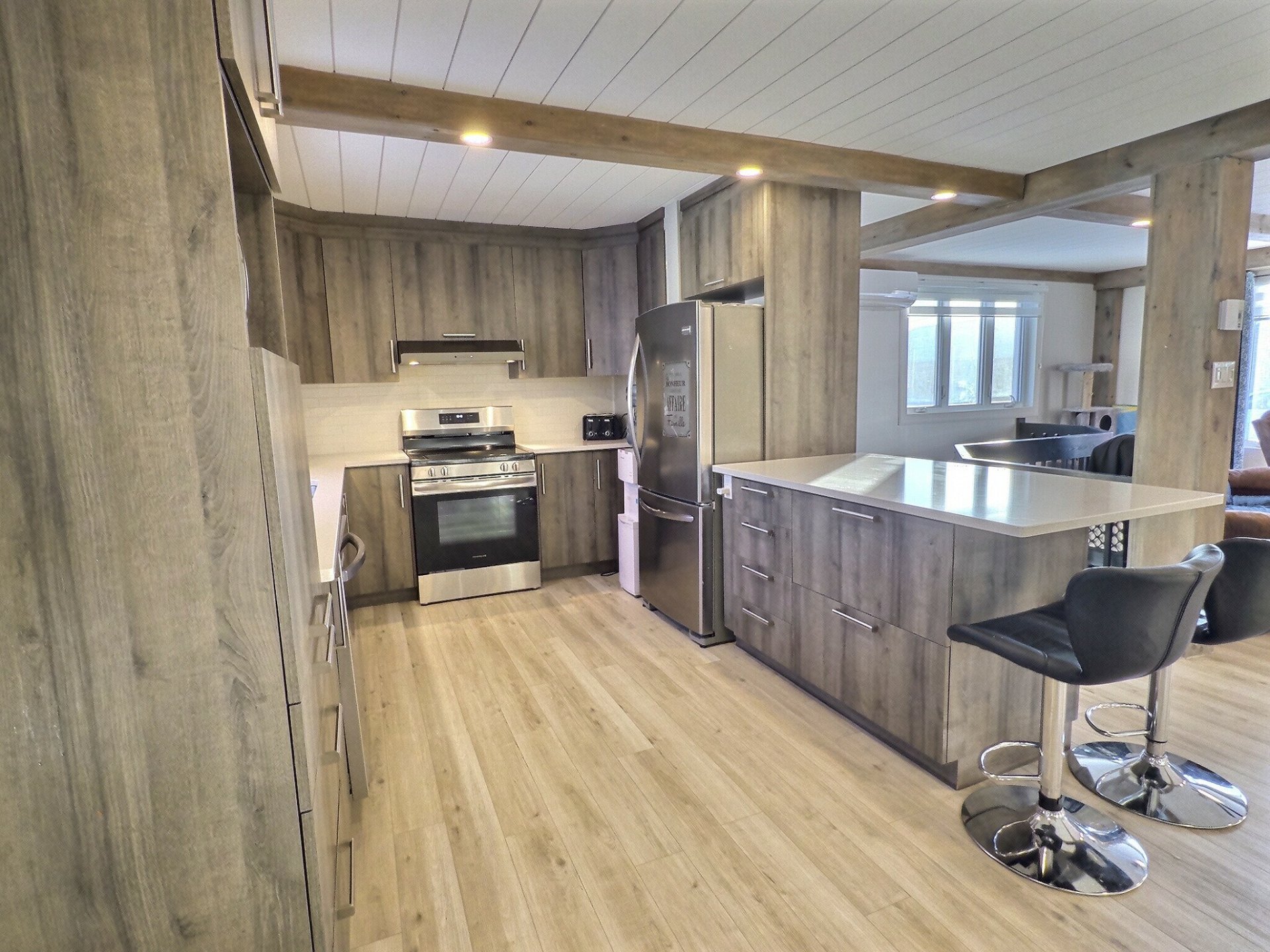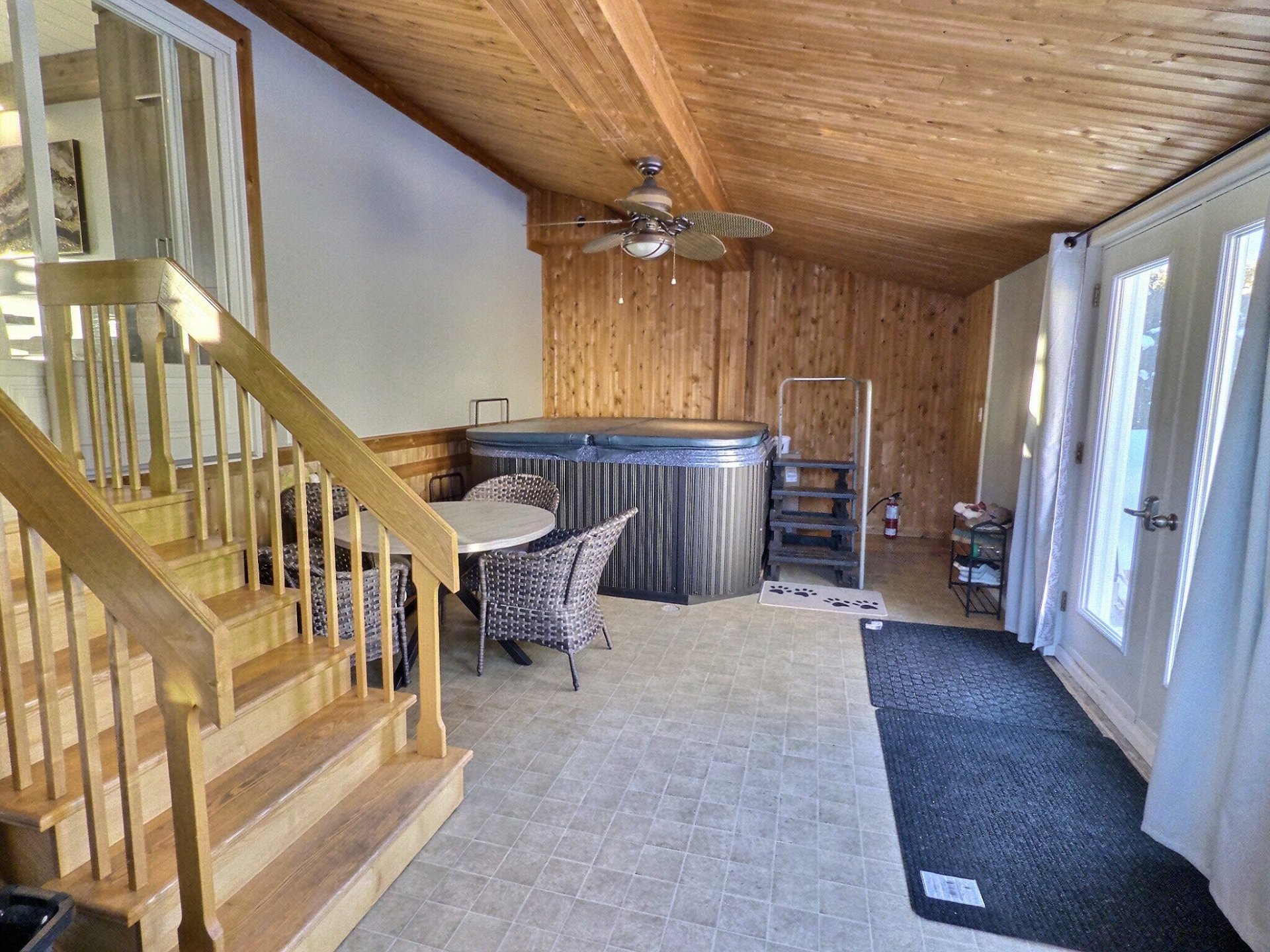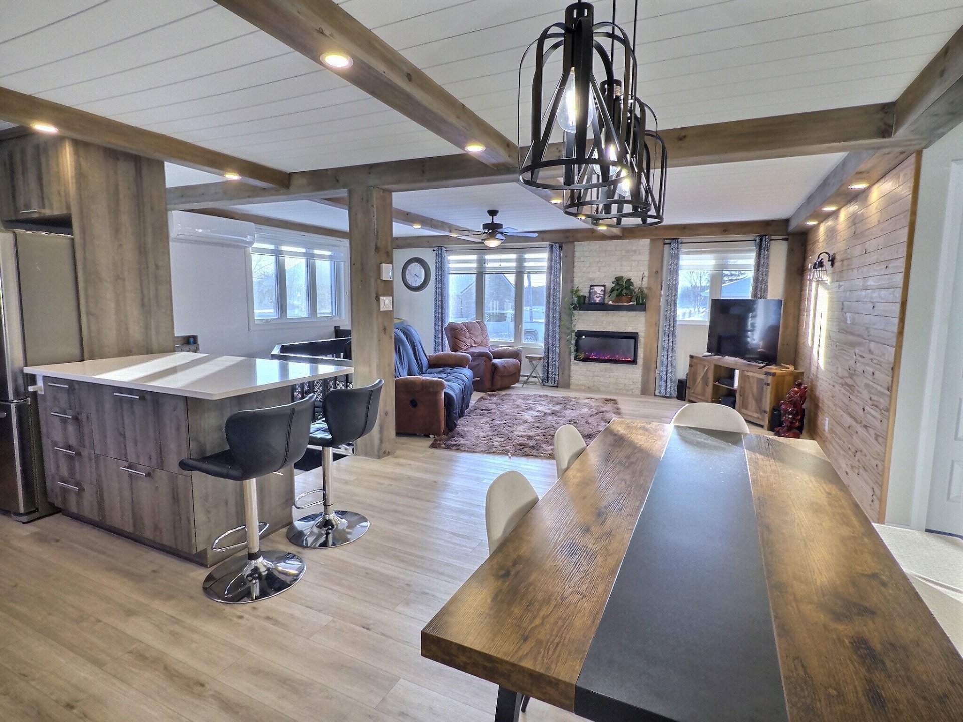 string(376) "3 bacs (noir, bleu, vert), luminaires fixes, SPA et accessoires, balayeuse centrale et accessoires, table de billard, table de soccer, lave-vaisselle, thermopompe, rideaux et tringles à rideaux, 2 bancs de comptoir et adoucisseur d'eau (jamais utilisé, sera à vérifier par l'acheteur VENDU TEL QUEL), banquette, foyer électrique au salon du RC, meuble télé du sous-sol."