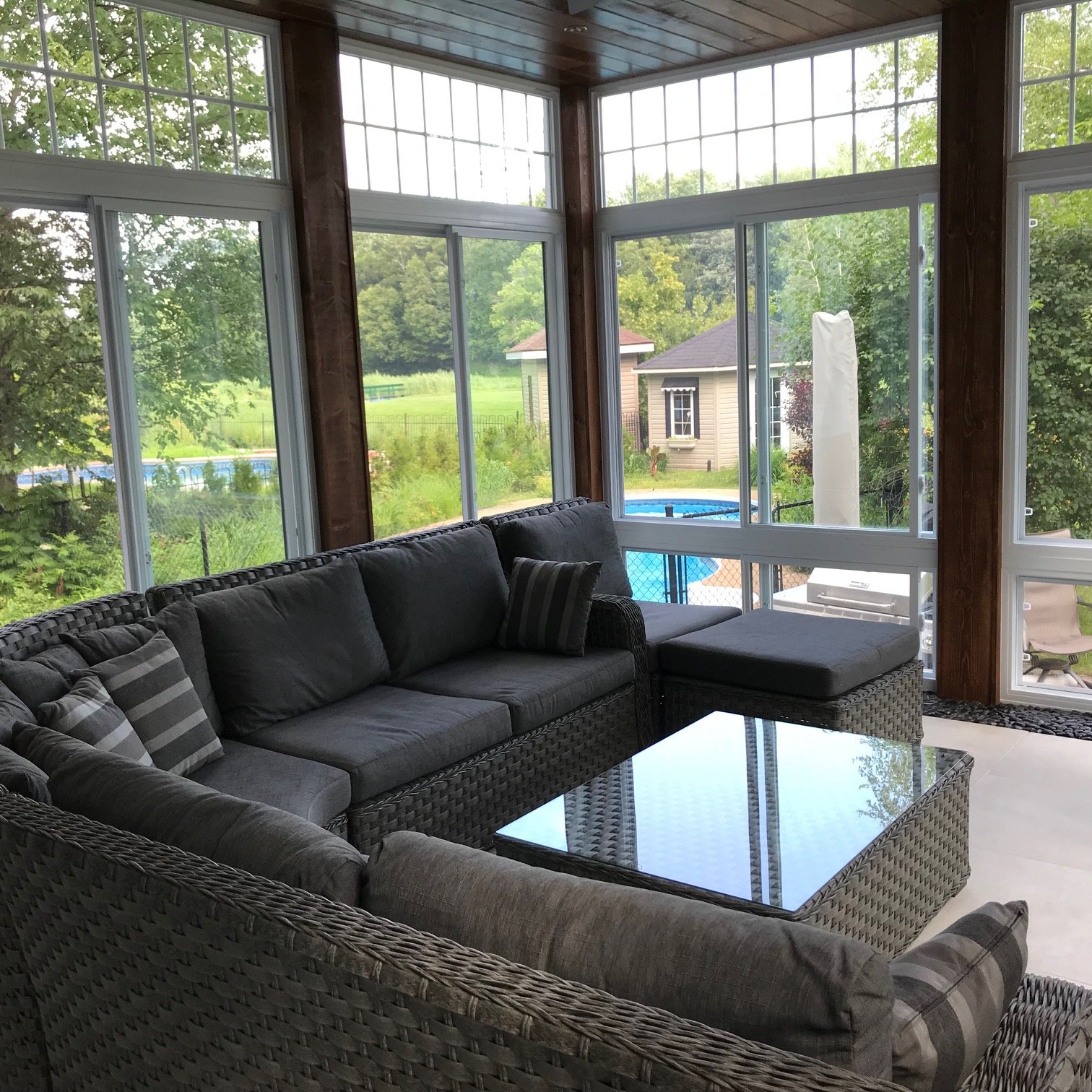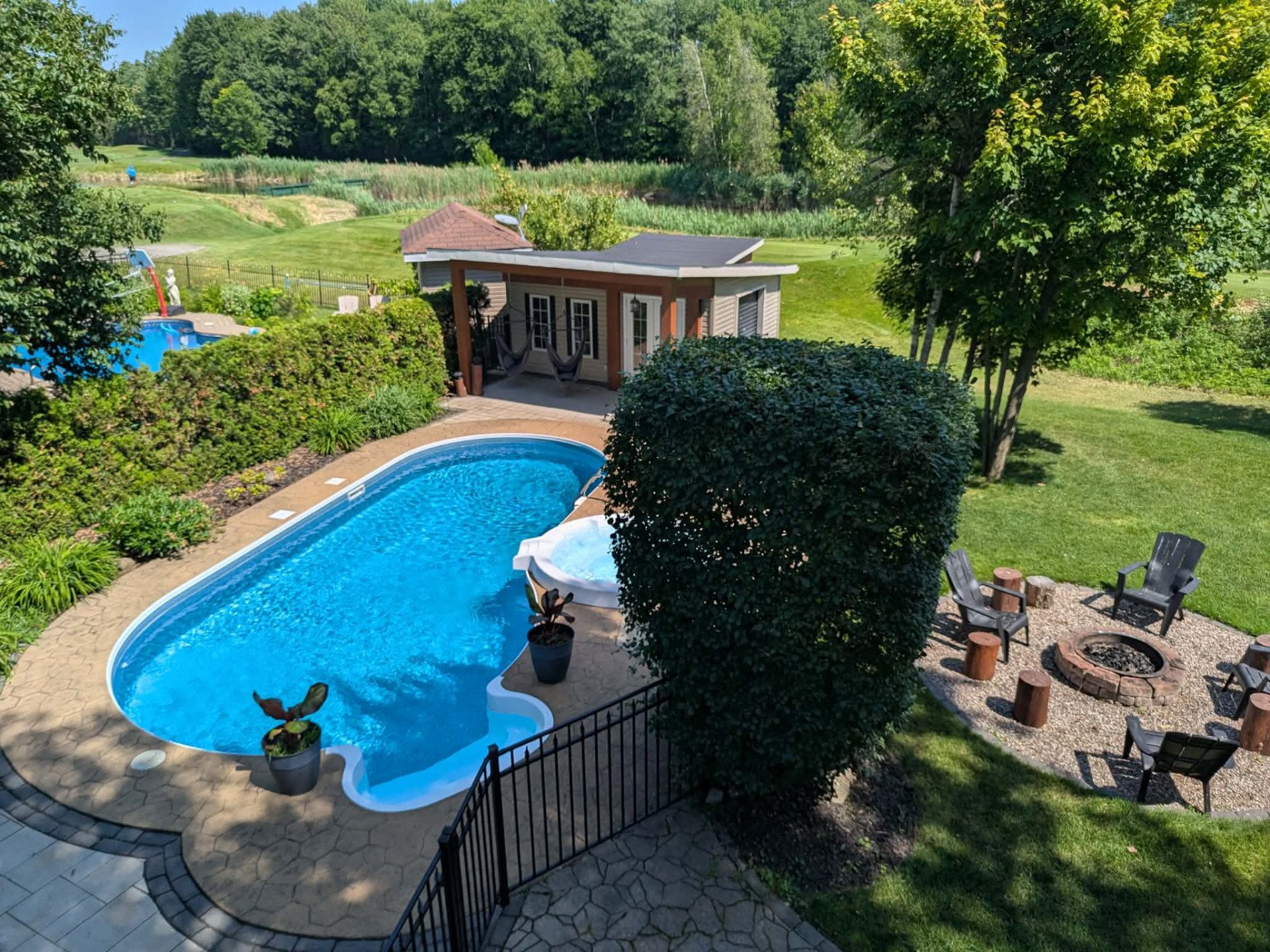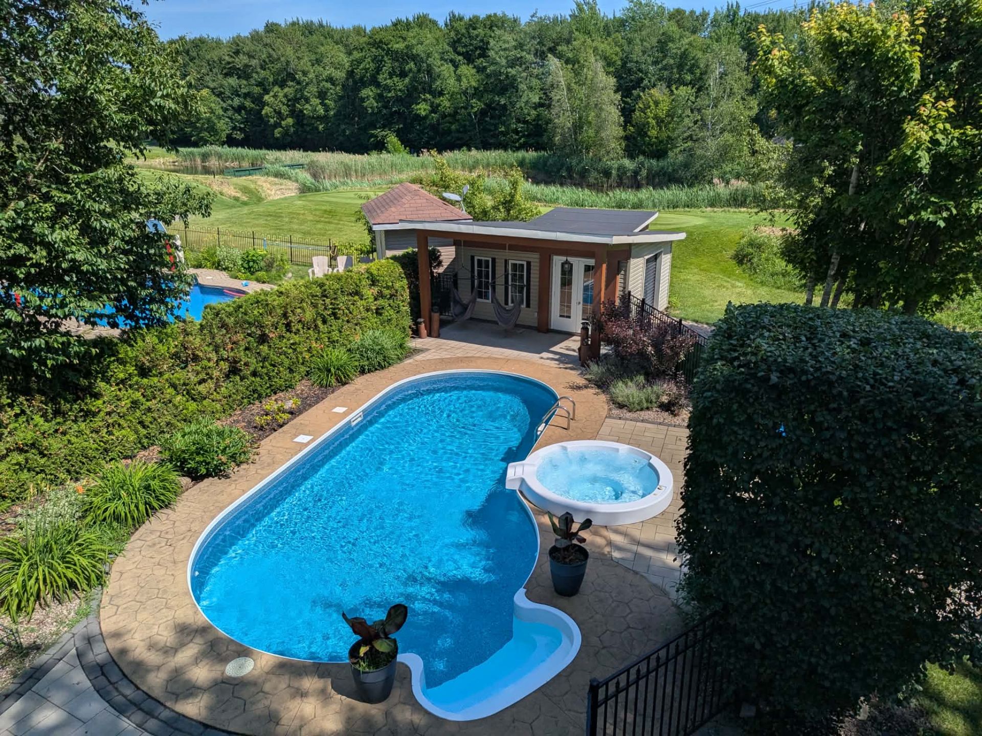 string(283) "Cuisinière au gaz à four double, réfrigérateurs (cuisine et garage), lave-vaisselle, luminaires, stores, pôles et rideaux, bar et ses tabourets, table de billard, aspirateur central et ses accessoires, génératrice, accessoires de piscine et chauffe-eau, système d'irrigation."