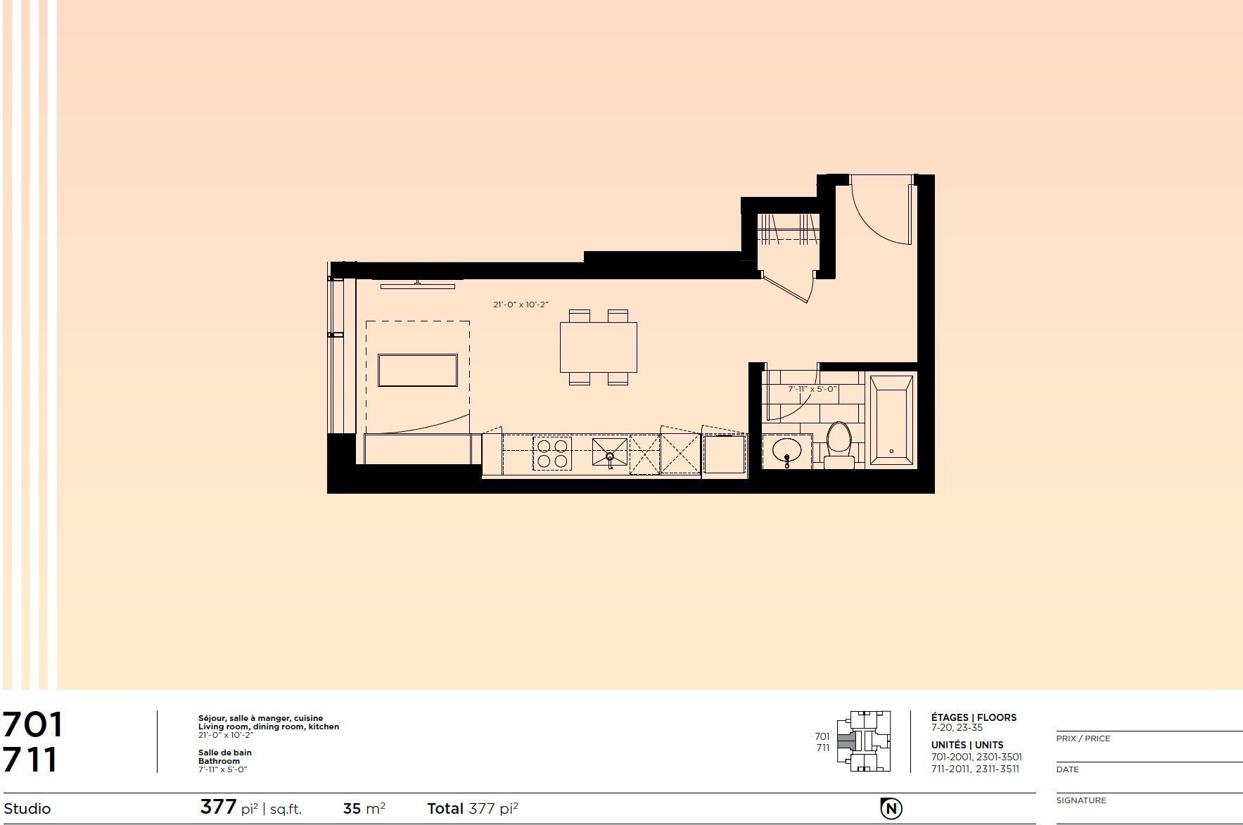 | Aire habitable | 377 Pieds carrés |