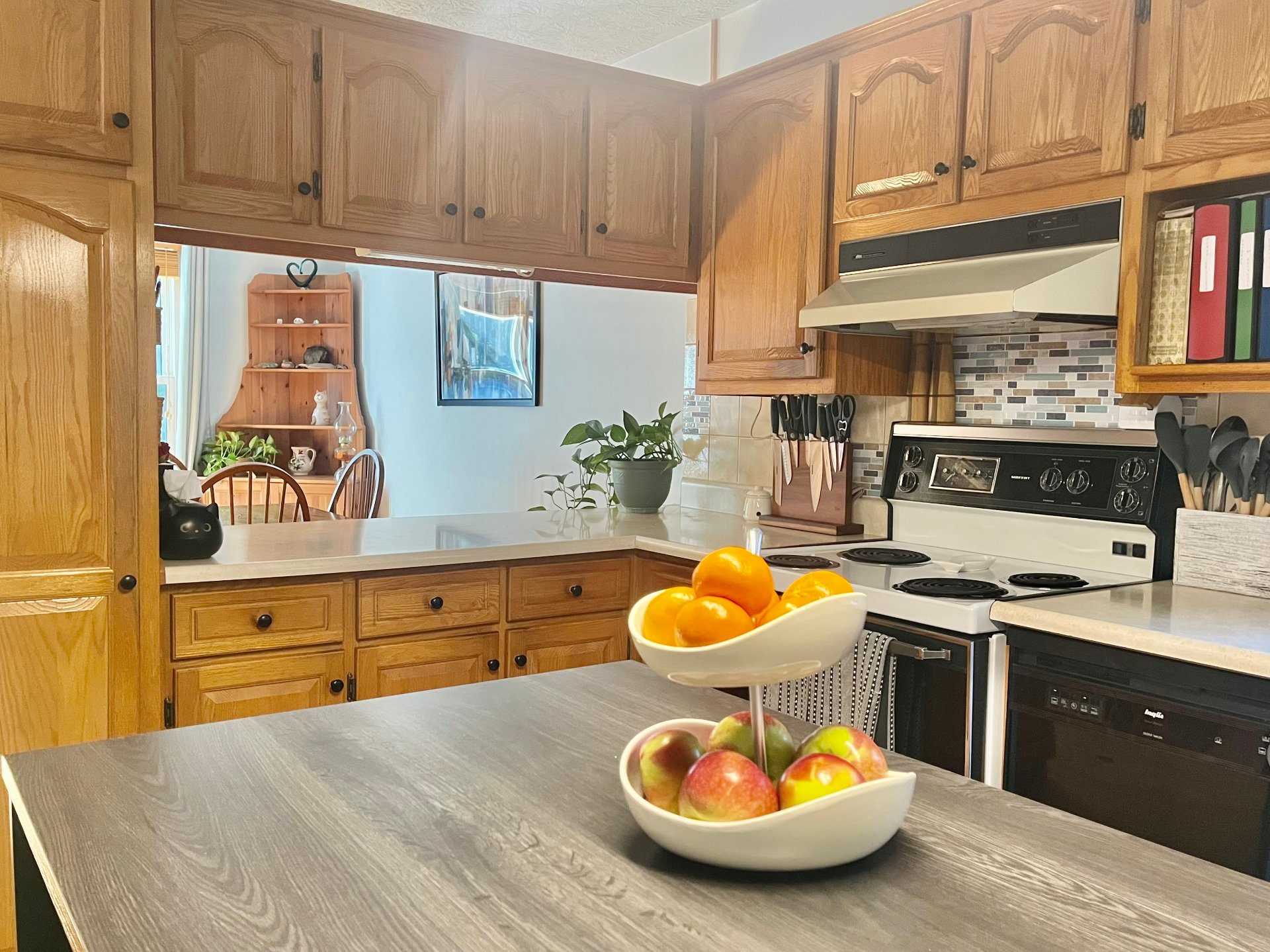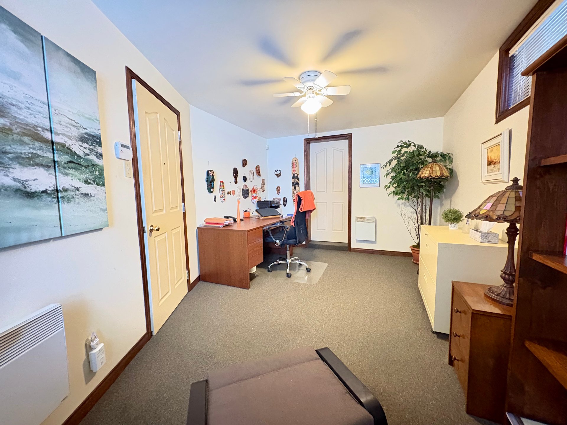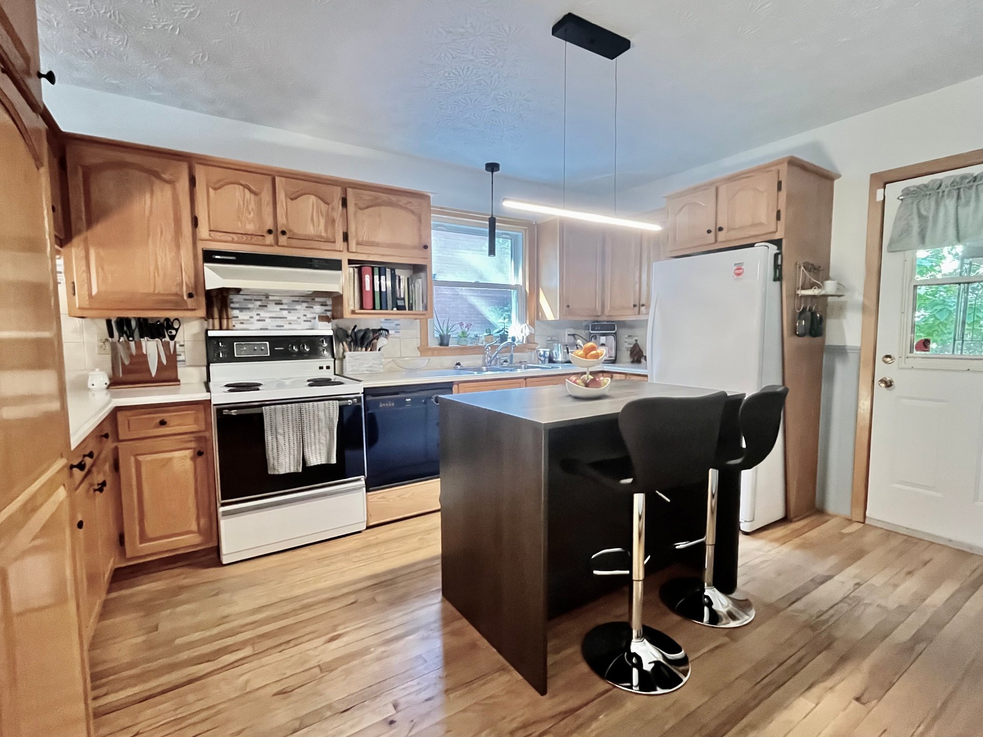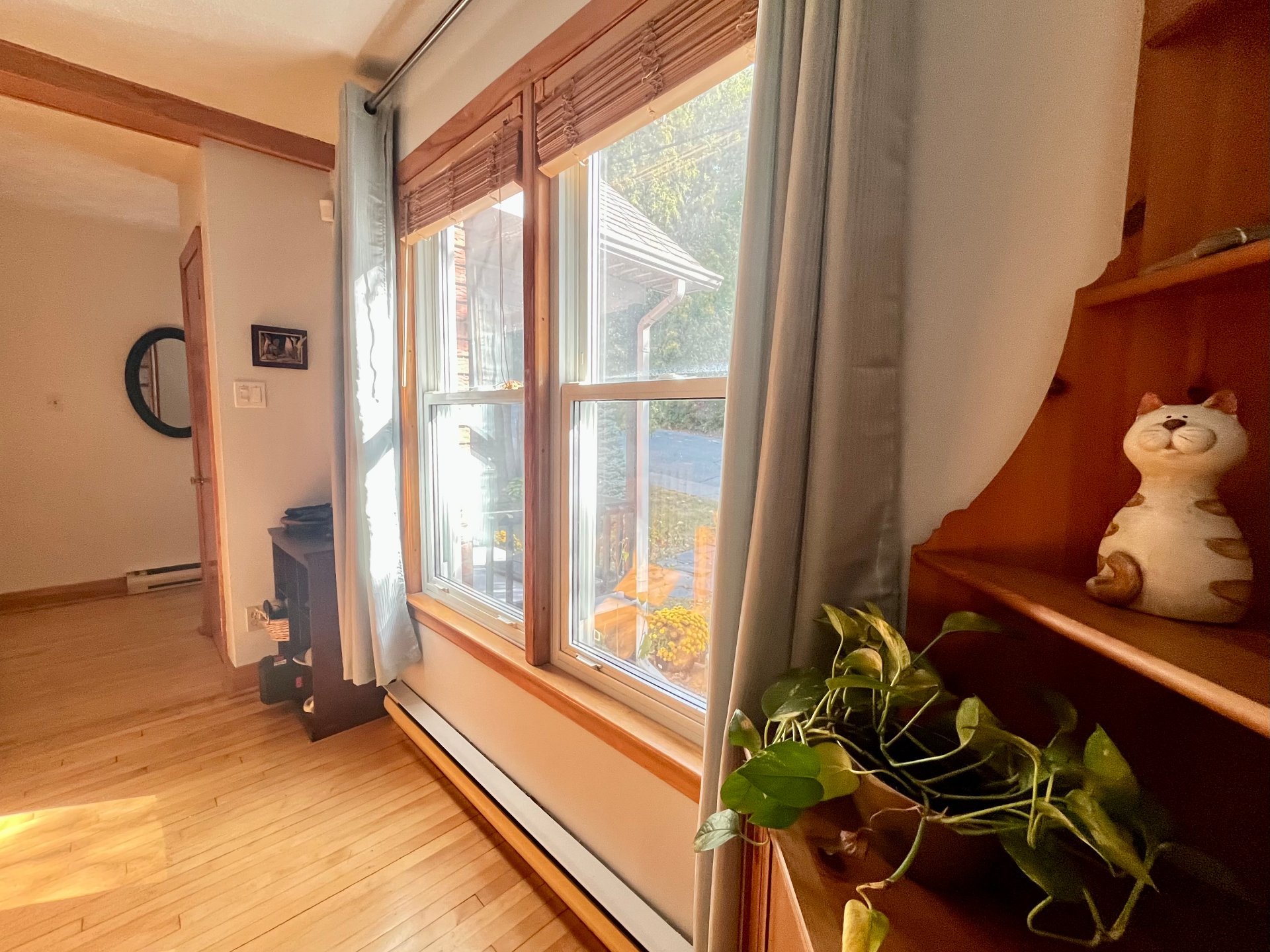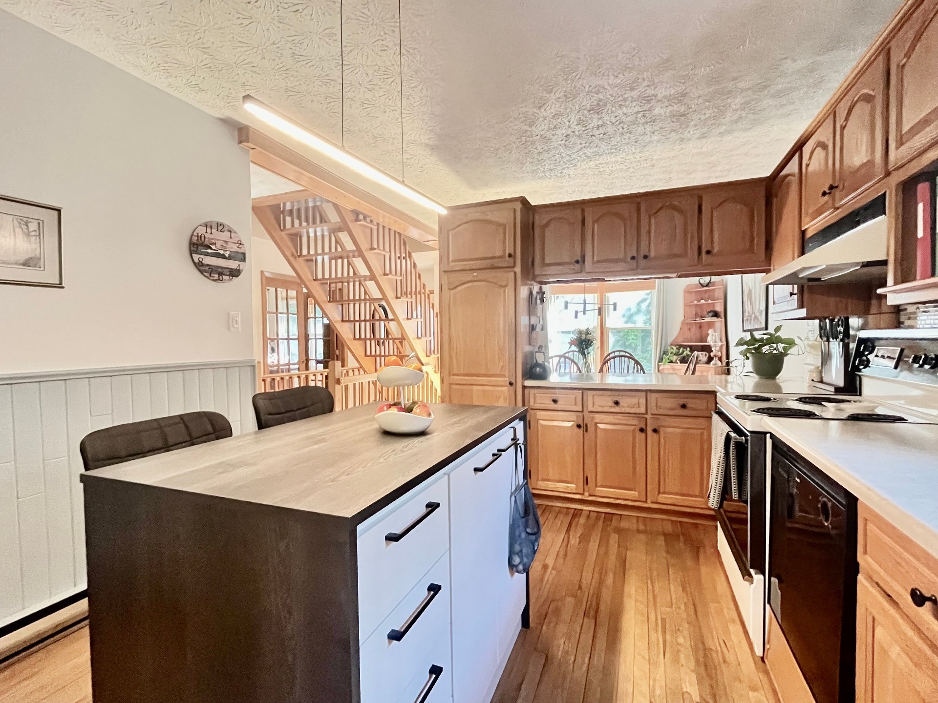 string(187) "Lustres, stores, lave-vaisselle, îlot et 4 bancs de comptoir, tablettes décoratives, 2 commodes dans salle de lavage, thermostats électroniques, balance du bois de chauffage, cabanon. "
