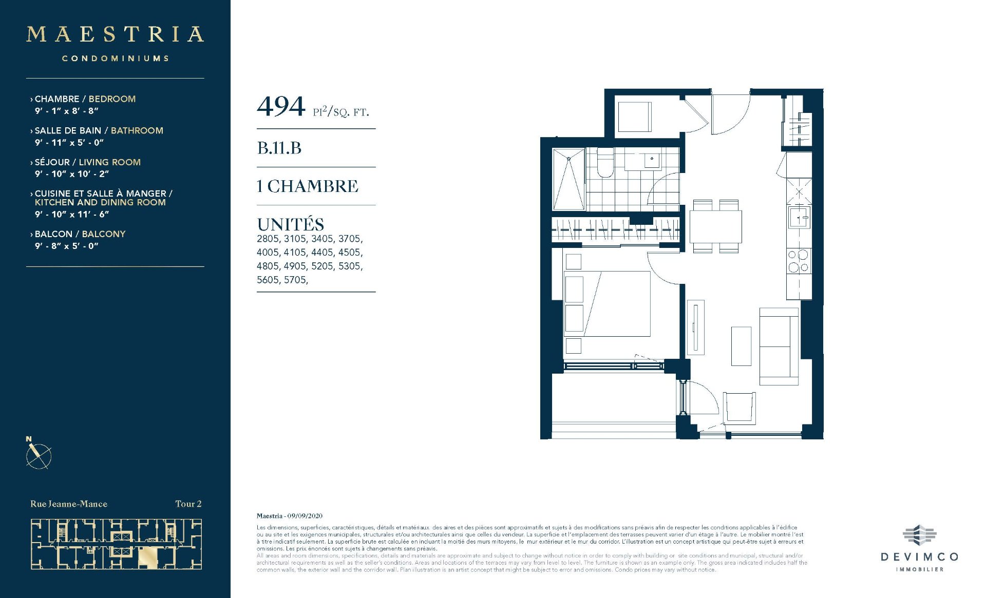 | Aire habitable | 494 Pieds carrés |