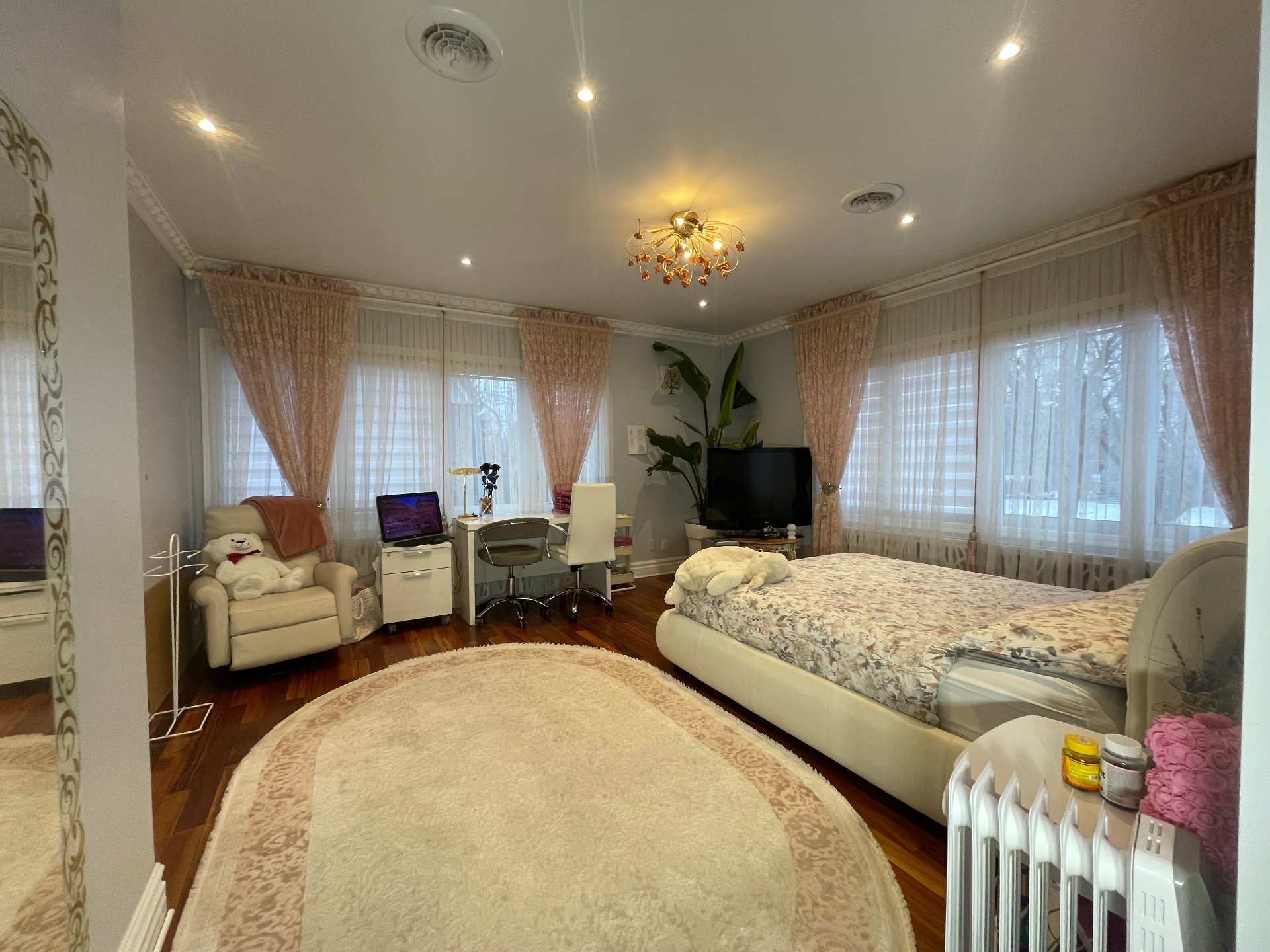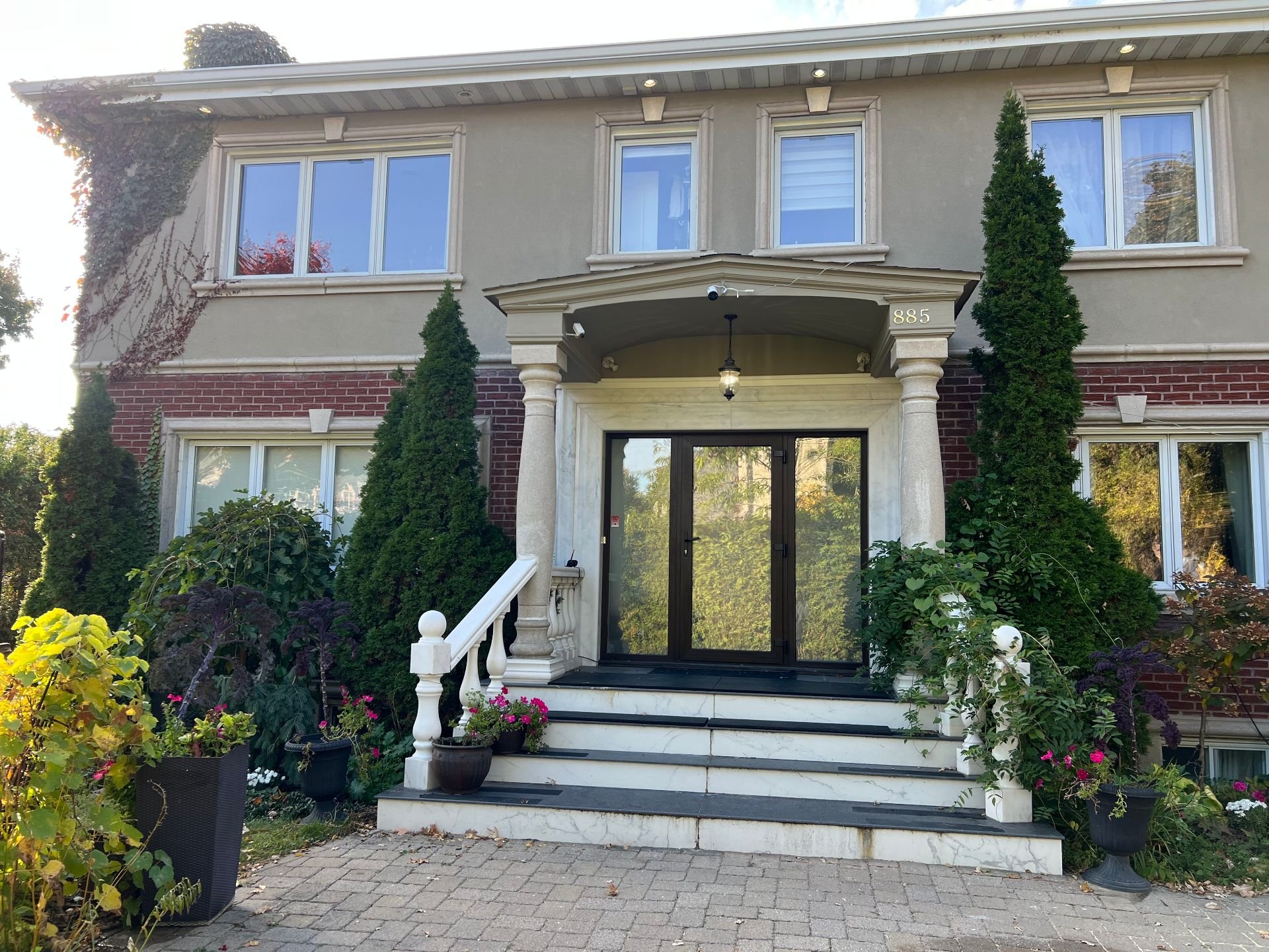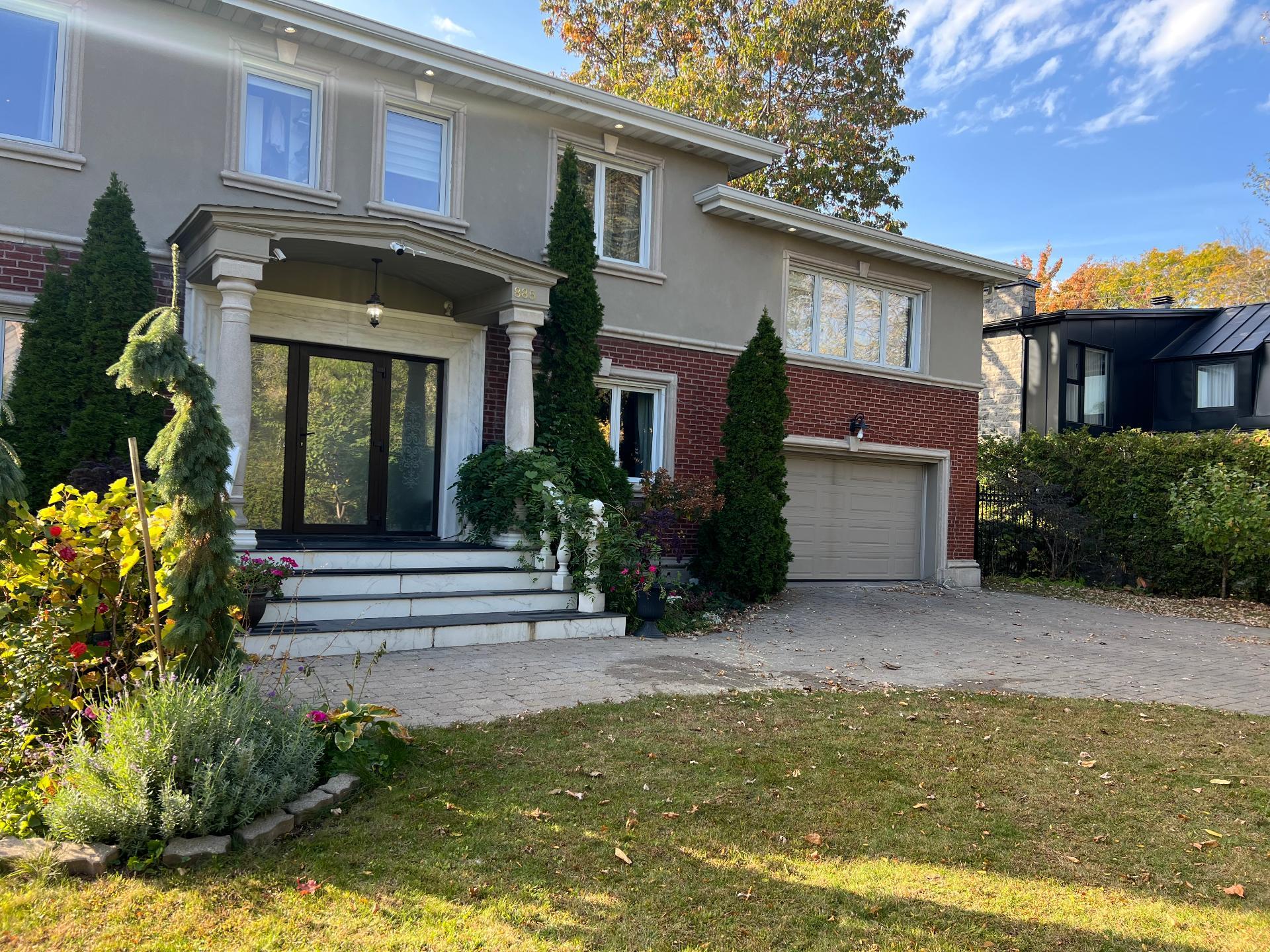 Spacieuse maison familiale au 885 av. Laird, Ville Mont-Royal. Comprend 5+1 chambres, 4½ s.d.b. et un bureau au r.d.c. Solarium lumineux, salon, salle de jeux et espace d'entraînement avec sauna au sous-sol aménagé. Planchers en bois exotique, garage double et allée pour 4 voitures. Grand terrain paysager offrant intimité et confort. Emplacement recherché, près des parcs, écoles et futur centre communautaire avec piscine intérieure.