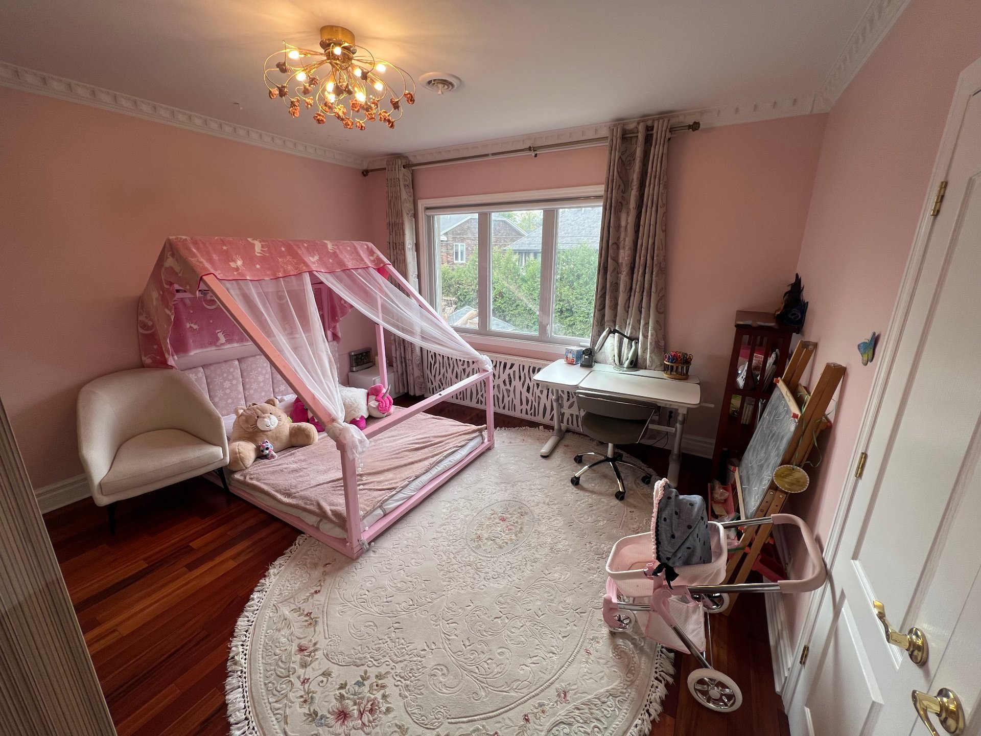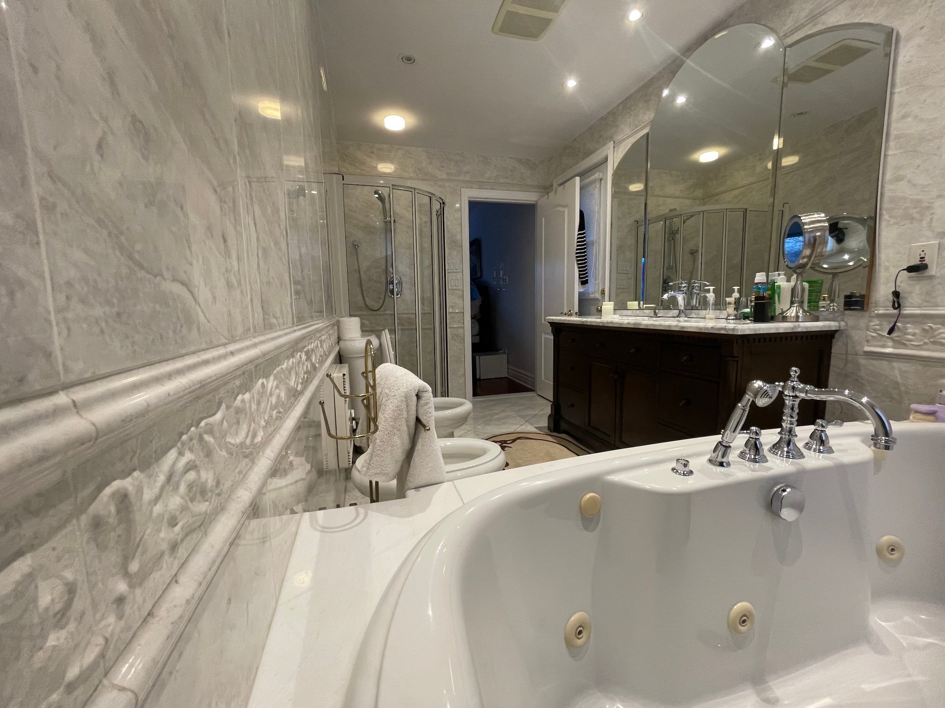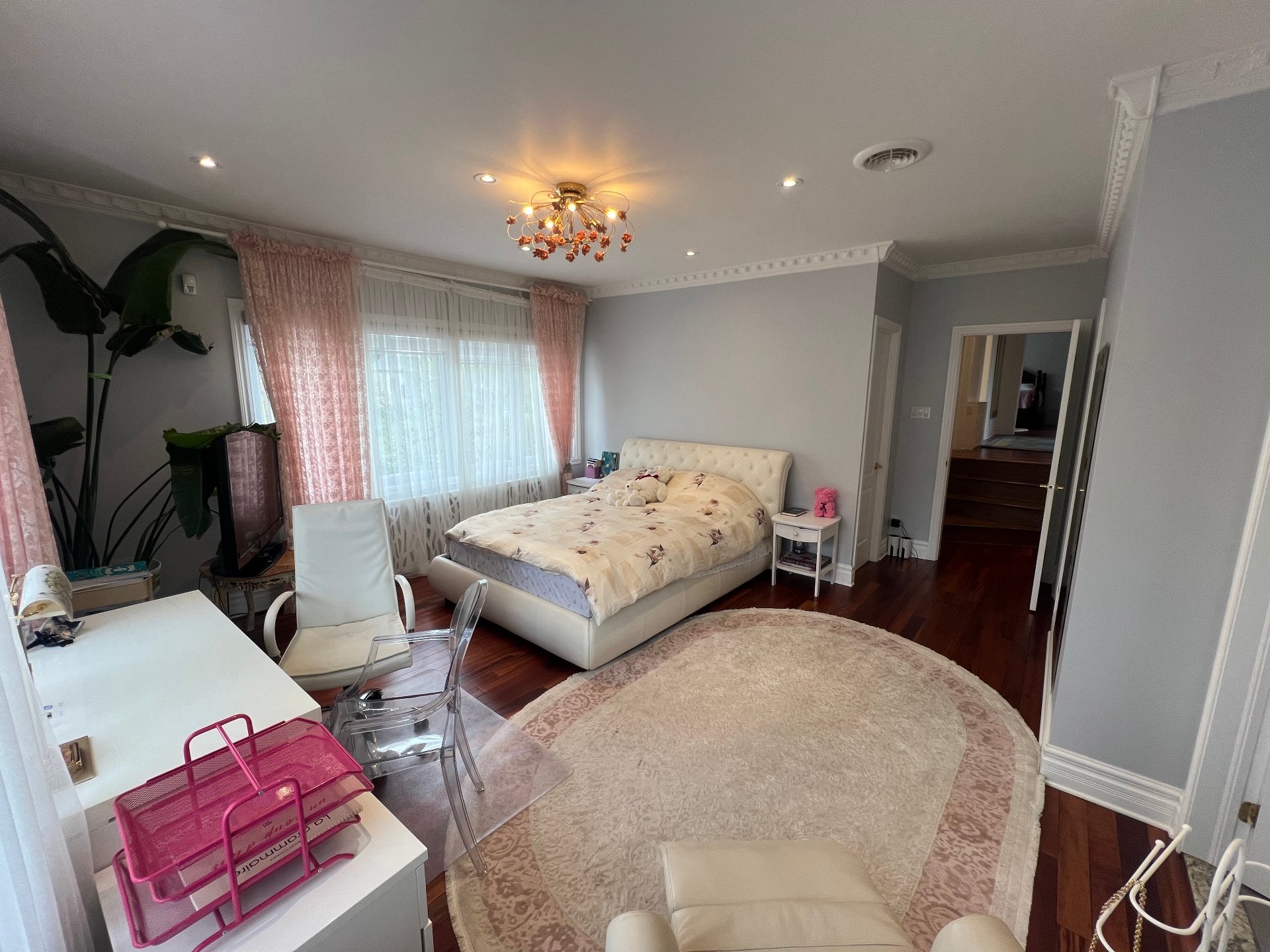 Spacieuse maison familiale au 885 av. Laird, Ville Mont-Royal. Comprend 5+1 chambres, 4½ s.d.b. et un bureau au r.d.c. Solarium lumineux, salon, salle de jeux et espace d'entraînement avec sauna au sous-sol aménagé. Planchers en bois exotique, garage double et allée pour 4 voitures. Grand terrain paysager offrant intimité et confort. Emplacement recherché, près des parcs, écoles et futur centre communautaire avec piscine intérieure.
