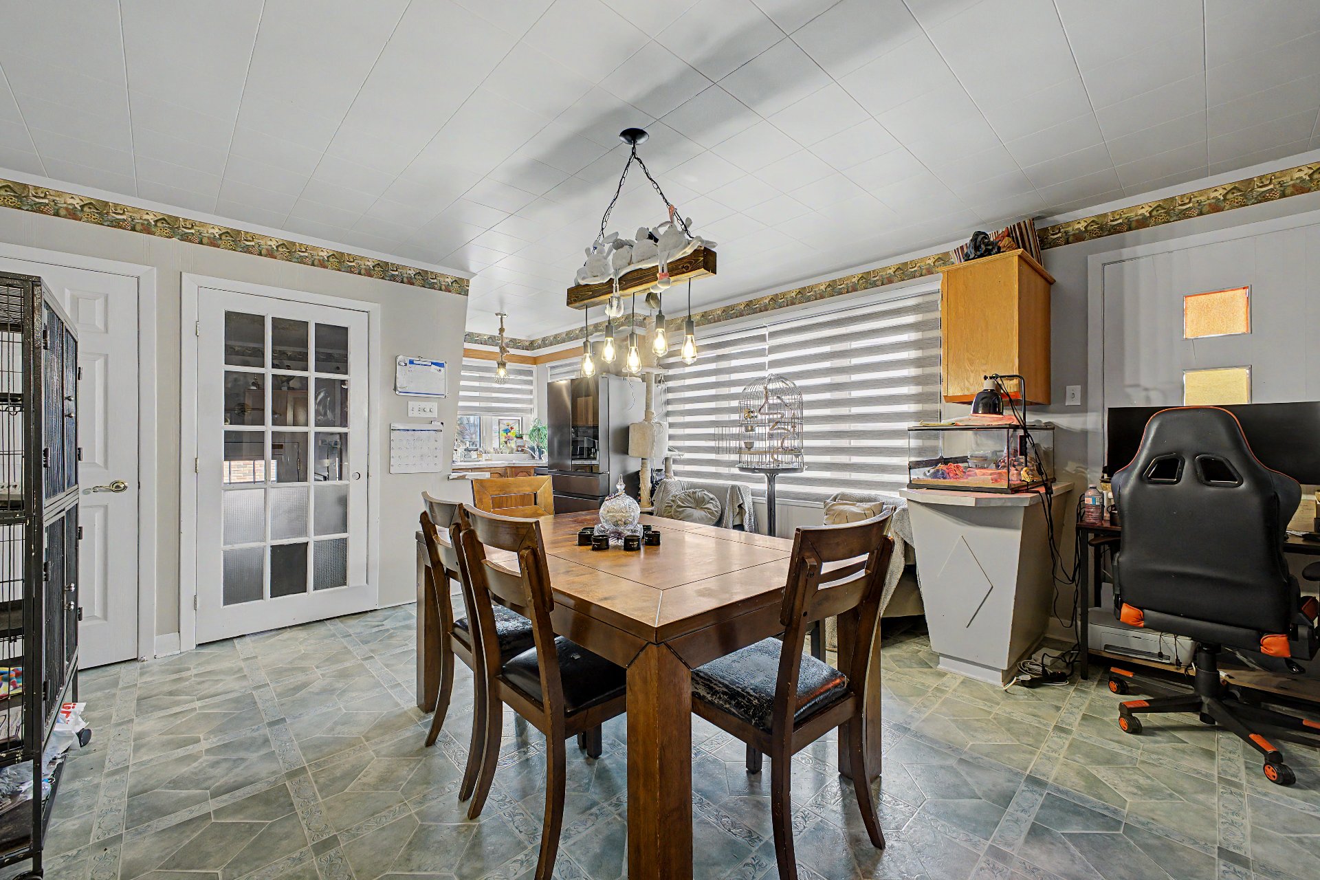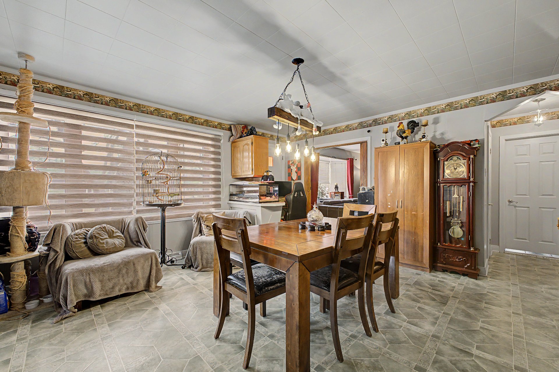 string(206) "Luminaires de la cuisine, de la salle a manger et de la chambre du milieu (chandelier blanc), rideaux, caméra de sécurité, électroménagers, outils et objets dans le cabanon, thermopompe de la piscine. "