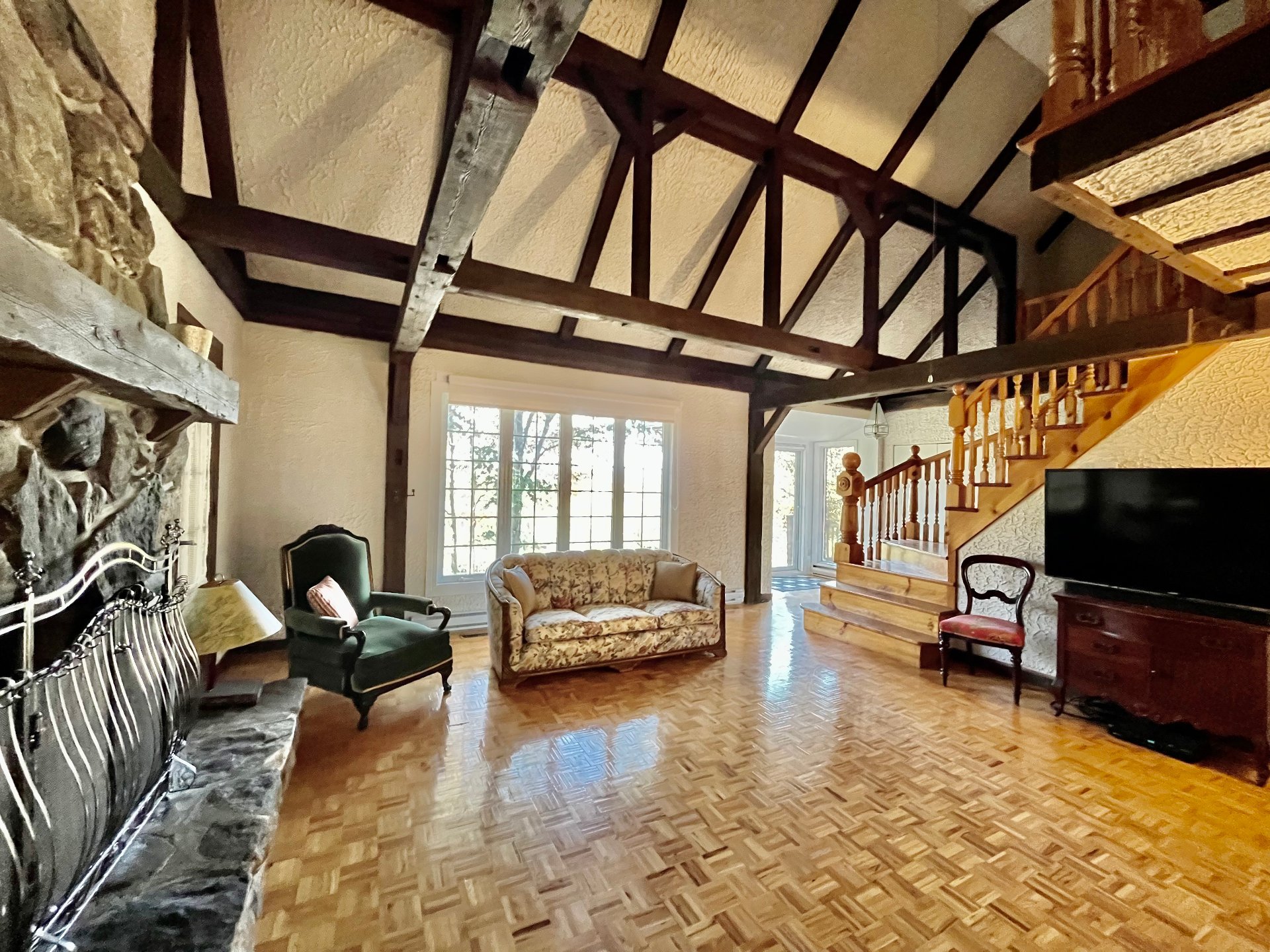 OPPORTUNITÉ!Magnifique domaine de 7,8 acres zoné blanc. Retrouvez sur ce site exceptionnel une majestueuse et unique demeure d'inspiration architecturale anglo-normande.Elle vous accueille avec toute sa chaleur et sa luminosité intérieure. Pièces de vie à aire ouverte, escalier central, poutres apparentes,foyer de pierre, salon ouvert sur 2 étages, mezzanine, etc. Vous découvrirez ici un intérieur stylisé spacieux. Vaste solarium pour la détente,grande terrasse au dessus du garage double offrant une vue panoramique sur l'étang et la nature.Cet emplacement est un véritable coup de coeur!Site de rêve à 5 minutes du CHUS et services.