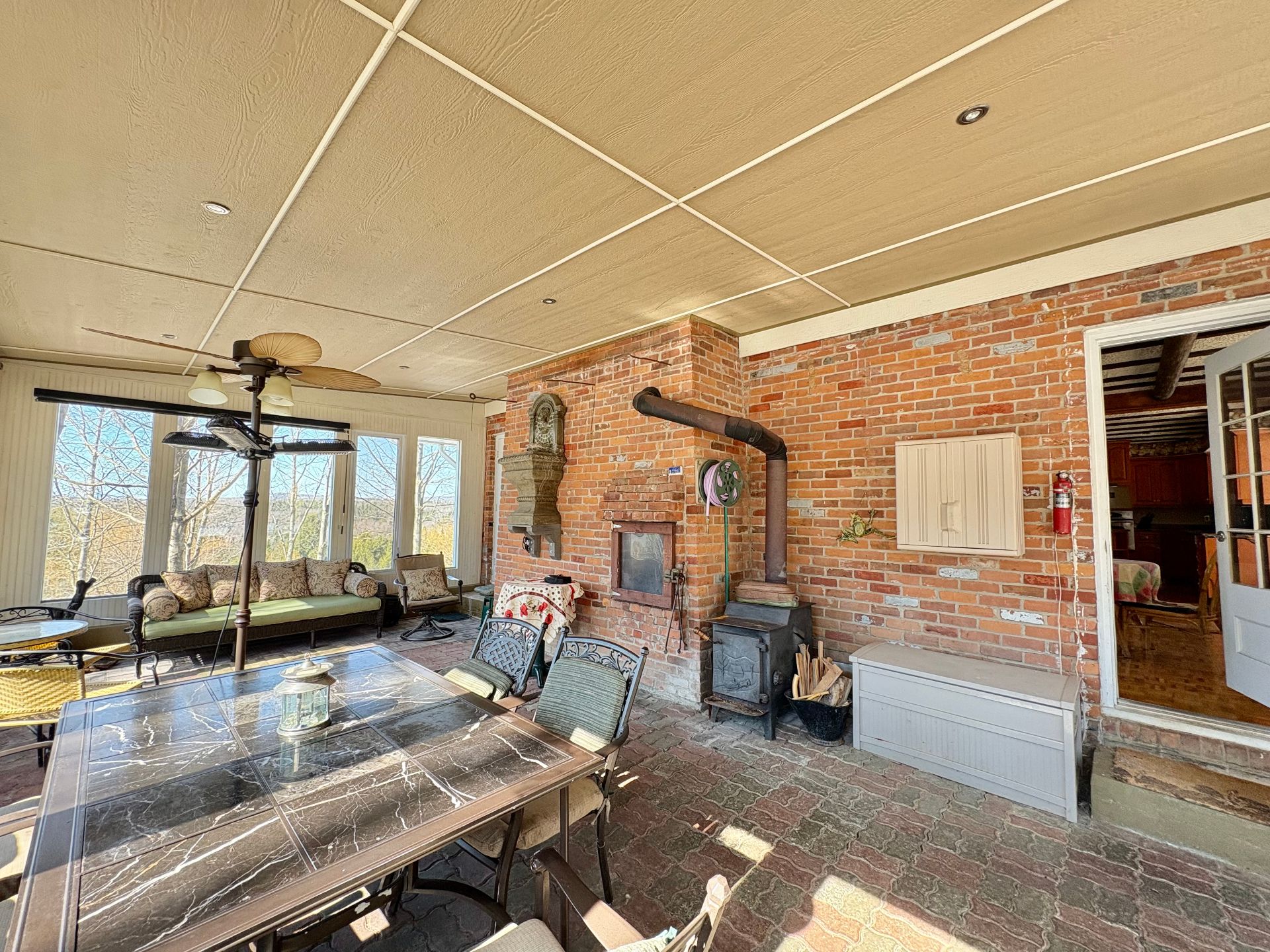 string(214) "Lustres, stores, tringles et rideaux, lave-vaisselle, plaque chauffante, cuisinière encastrée, aspirateur central et ses accessoires, 2 poêles à bois, annexe à l'huile, balance du bois de chauffage, 2 remises."
