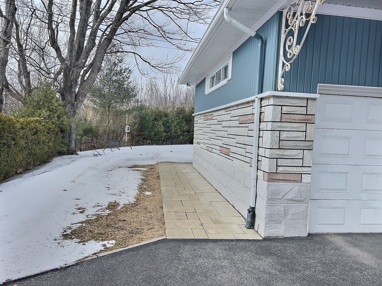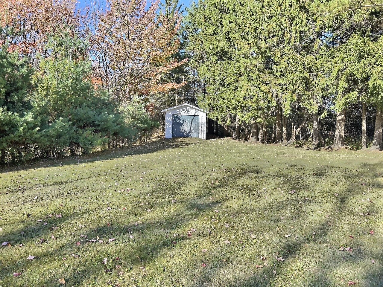garage en tôle situé au fond du terrain, fournaise électrique, thermopompe, aspirateur central, moteur porte de garage, tringles, toiles, rideaux, lustres, luminaires.